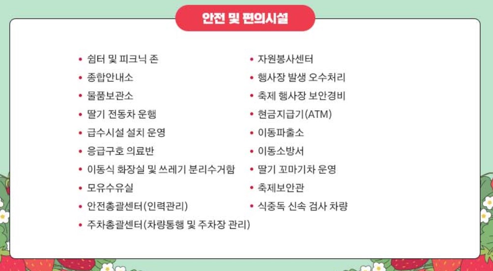 또한, 이번 축제는 지역 농민과 장인들이 자신의 제품을 선보이고 방문객과 교류할 수 있는 플랫폼 역할을 하며, 공동체 의식을 키우고 지역 농업 산업을 홍보하는 역할을 합니다. 딸기 축제에는 미식가, 문화 애호가, 가족 및 친구들과 함께 즐거운 하루를 보내고 싶은 사람 등 모두를 위한 무언가가 있습니다. 오감을 즐겁게 하고 평생 잊지 못할 소중한 추억을 만들어주는 경험이 될 것입니다.