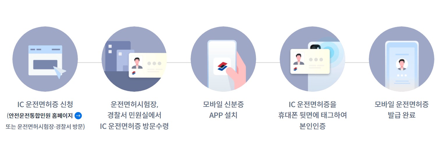 IC 운전면허증으로 교체를 원하지 않는 경우 실물 운전면허증 변동없이 모바일 운전면허증을 발급받는 방법입니다. 운전면허시험장 방문을 통해 신청하고 스마트폰에 모바일 운전면허증을 발급받을 수 있습니다.