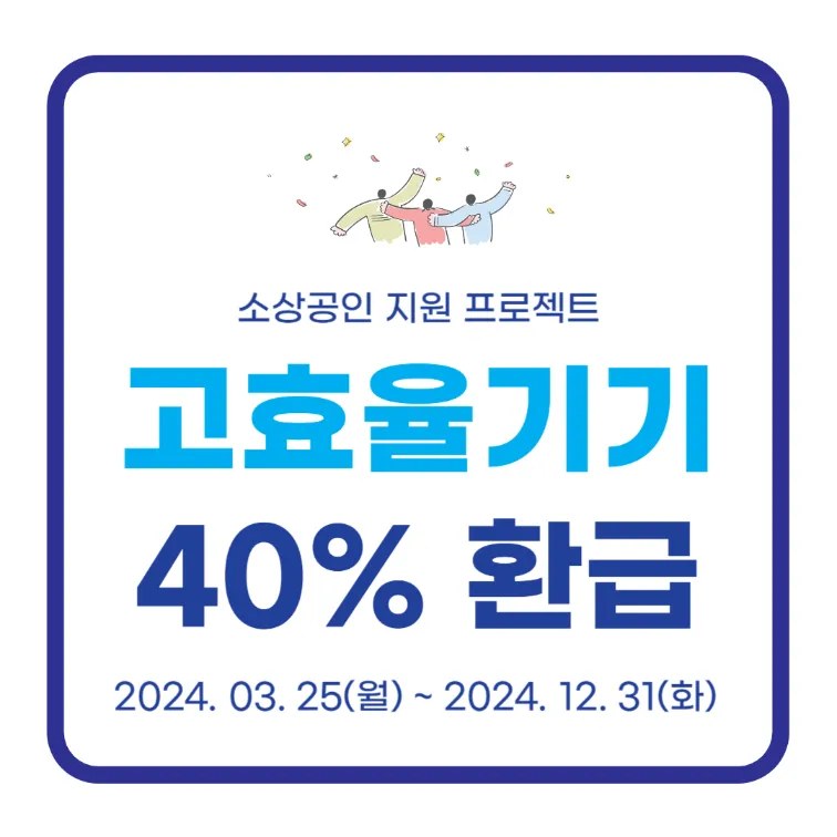 소상공인을 대상으로 에너지 효율개선 및 전기요금 부담 완화를 위한 지원사업을 알려드리겠습니다. 고효율기기인 냉(난)방기, 냉장고, 세탁기, 건조기 등 구입시에 구매비용의 40%를 지원해주는 사업입니다. 단, 에너지효율 1등급 인증제품 구매시에 지원가능합니다. 품목별 지원한도가 정해져 있고, 4개 품목을 모두 구입하는 경우에는 최대 480만원까지 지원받을 수 있습니다. 증빙서류만 있다면 1월 1일 이후 구매했던 건에 한해서도 소급 신청이 가능합니다.