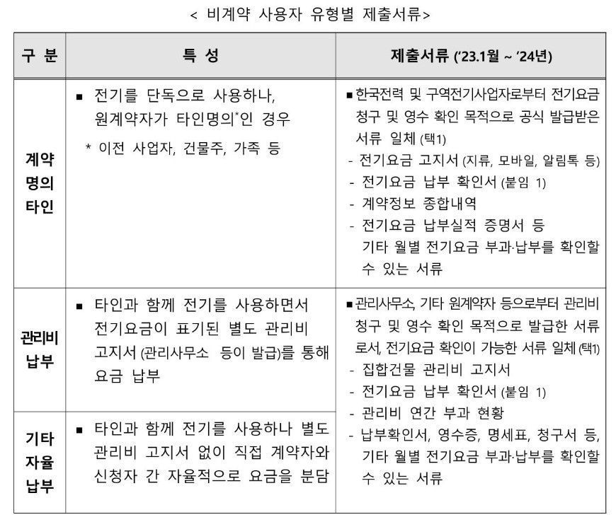 지원방식: 대상자 통보 후 최초로 발행되는 24년 전기요금 고지서 상 청구되는 전기요금부터 최대 20만원 차감