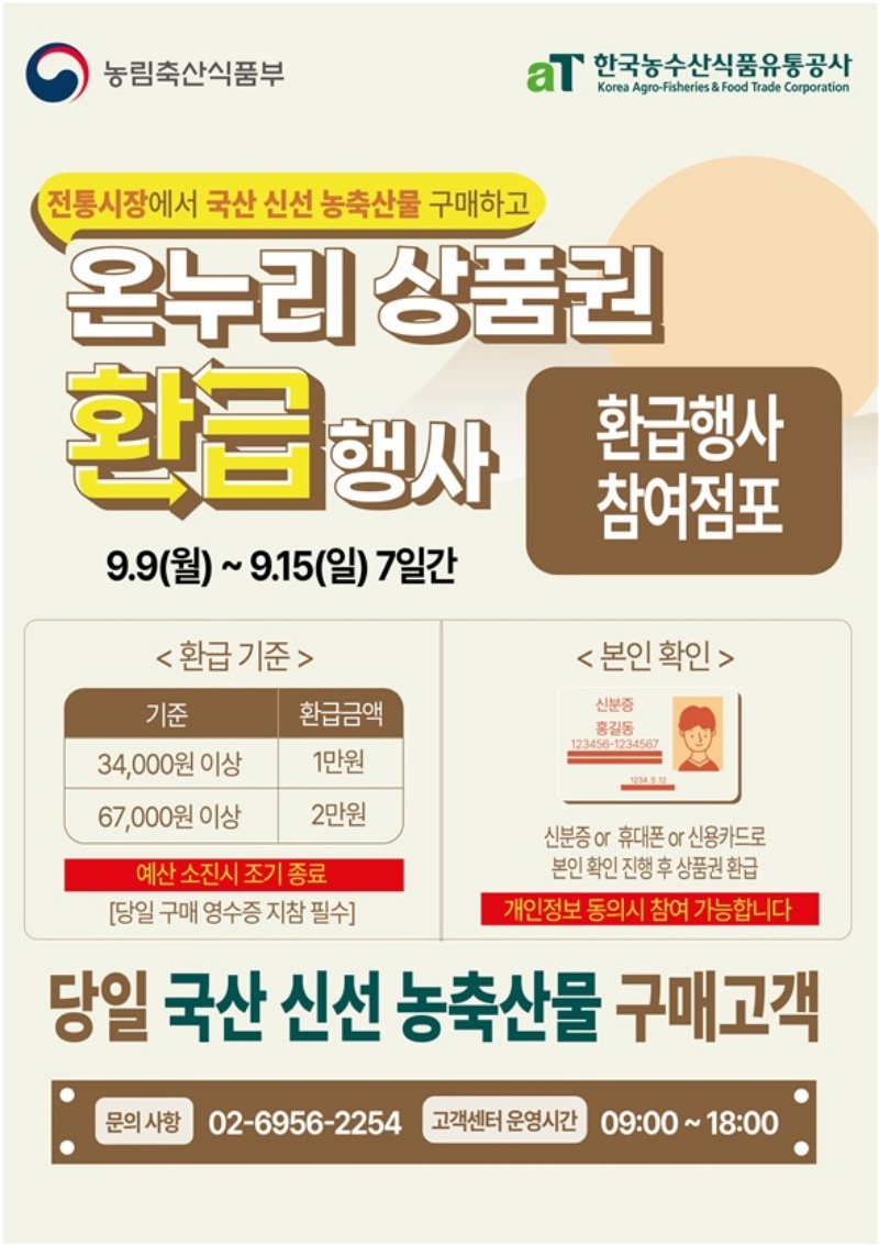 국산 농축산물 구매한 소비자들에게 구매금액의 최대 30%를 환급