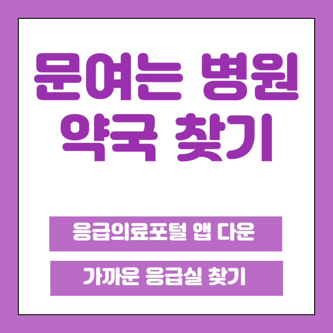 휴일이나 명절, 밤늦게까지 운영하는 병원, 약국, 응급실 등 모든 정보를 찾아볼 수 있는 앱이 있습니다. 응급의료포털 앱 다운받고 빠르게 조회하시고 이용하시기 바랍니다.