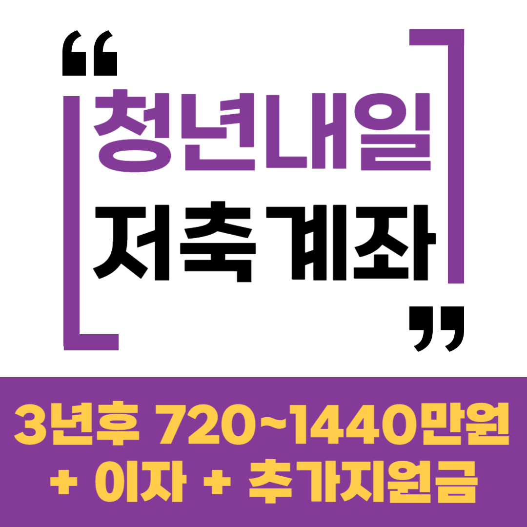 청년내일저축계좌는 만 19세에서 만 34세 청년중 자격조건을 충족하는 청년이 매월 10만원이상 납입시 월 근로소득장려금을 정액 지원해줍니다. 경제적으로 어려운 청년들이 자산을 모으고 미래를 준비할 수 있게 도와주려는 목적을 가지고 있습니다. 정부에서 최대 1,080만원까지 지원해주어 3년 동안 최대 1,440만원의 목돈을 만들 수 있습니다. 신청자격과 계좌 유지조건을 확인하고 신청하시어 지원금 놓치지말고 받아보시기 바랍니다.