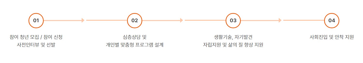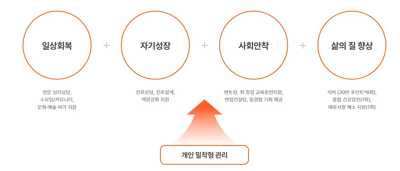 자립에 어려움을 겪고 있는 청년에게 심층 상담을 통해 개인별 특성에 맞게 맞춤형 지원 프로그램을 설계하고, 개인 밀착형 관리를 통해 안정적으로 사회에 진입할 수 있도록 돕는 지원사업입니다. 자기발견이나 삶의 질 향상을 위해 다양한 항목에서 지원을 제공합니다. 지원절차와 항목, 제출서류를 확인하고 지역별 제작소에 지원신청하셔서 청년분들에게 도움이 되었으면 좋겠습니다.